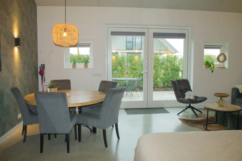 Een paar nachten even goed slapen in een heerlijk bed in een prachtig appartment van alle gemakken en luxe voorzien. Een compleet ingerichte eigen keuken. Een prive terras, waar af en toe de kippetjes rond zullen scharrelen.